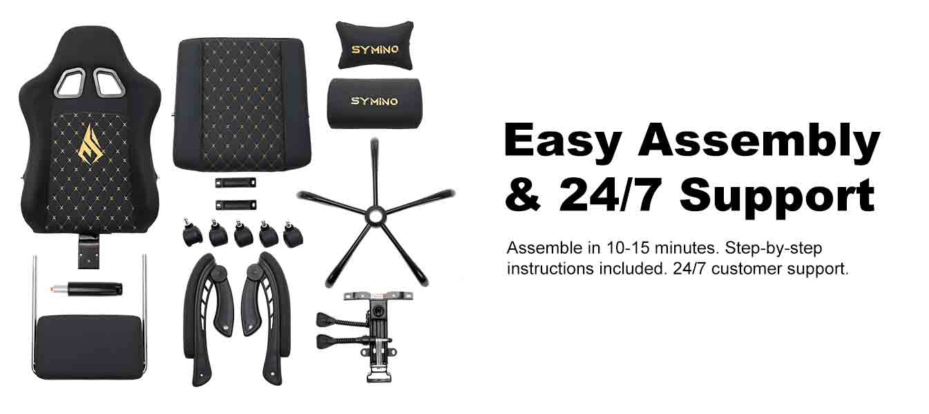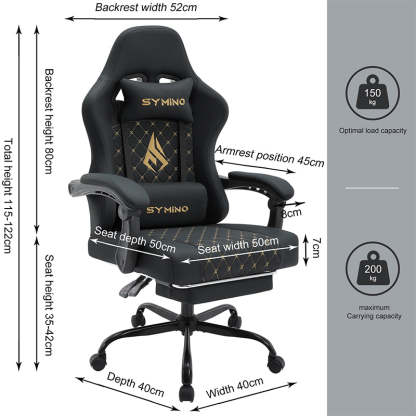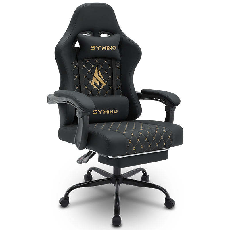 Chaise gaming ergonomique SYMINO en cuir PU style racing - Confortable et réglable, noire
