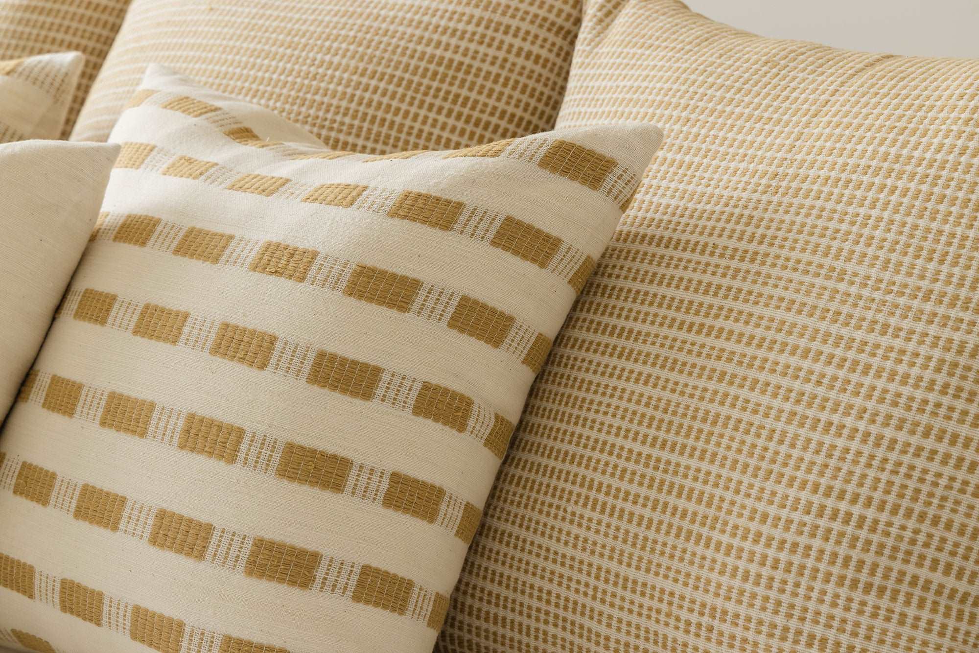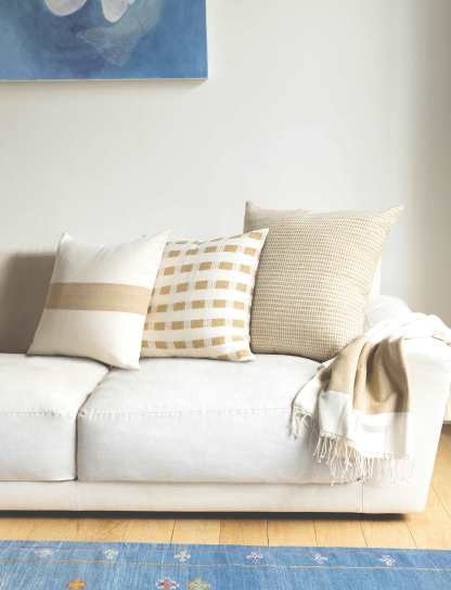 Revisit the intricate texture of the Aman Pillow, now in a warm neutral palette. The pattern is achieved using the careful hand-weaving techniques of our artisan partners. Crafted in 100% Ethiopian cotton, this ultra-soft pillow is ideal for pairing with graphic accents or mixing with equally subdued motifs.