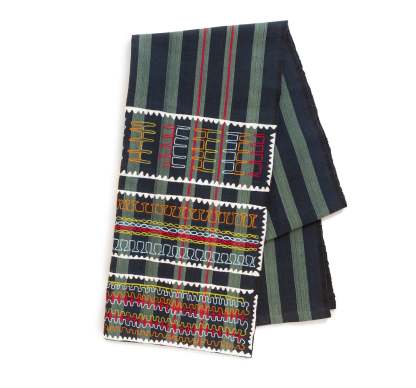 This hand-embroidered scarf is the only wearable piece in The Met x Bol�� Road Textiles collection��a contemporary interpretation of a richly adorned woman��s wrapper from Niger in the Museum��s holdings. The original textile, created in the 20th century by the Wodaabe-Fulani peoples, stood out for its vivid embroidery and symbolic importance, as it was worn during ceremonial gatherings and celebrations.