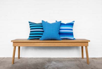 The new patterns in our Omo Valley Collection feature a series of stripes, dashes and dots inspired by the effervescence of the regions bold adornments and fashions. Traditional fashions blend with western goods to create ?a gorgeous m��lange of old and new. The bold stripes of the Turkana pillow is an homage to this?m��lange.