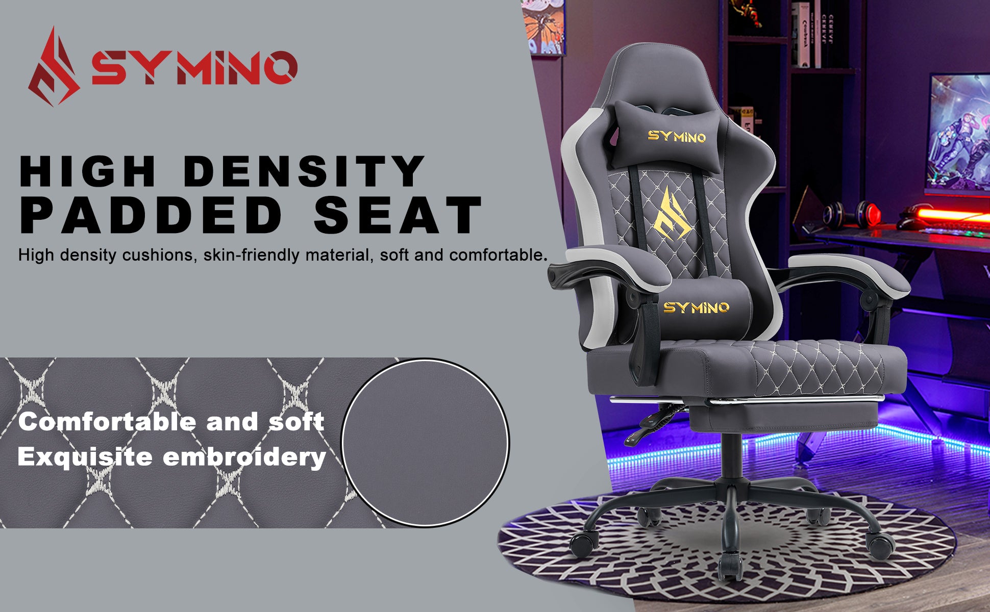 Chaise gaming ergonomique SYMINO en cuir PU style racing - Confortable et réglable, gris foncé