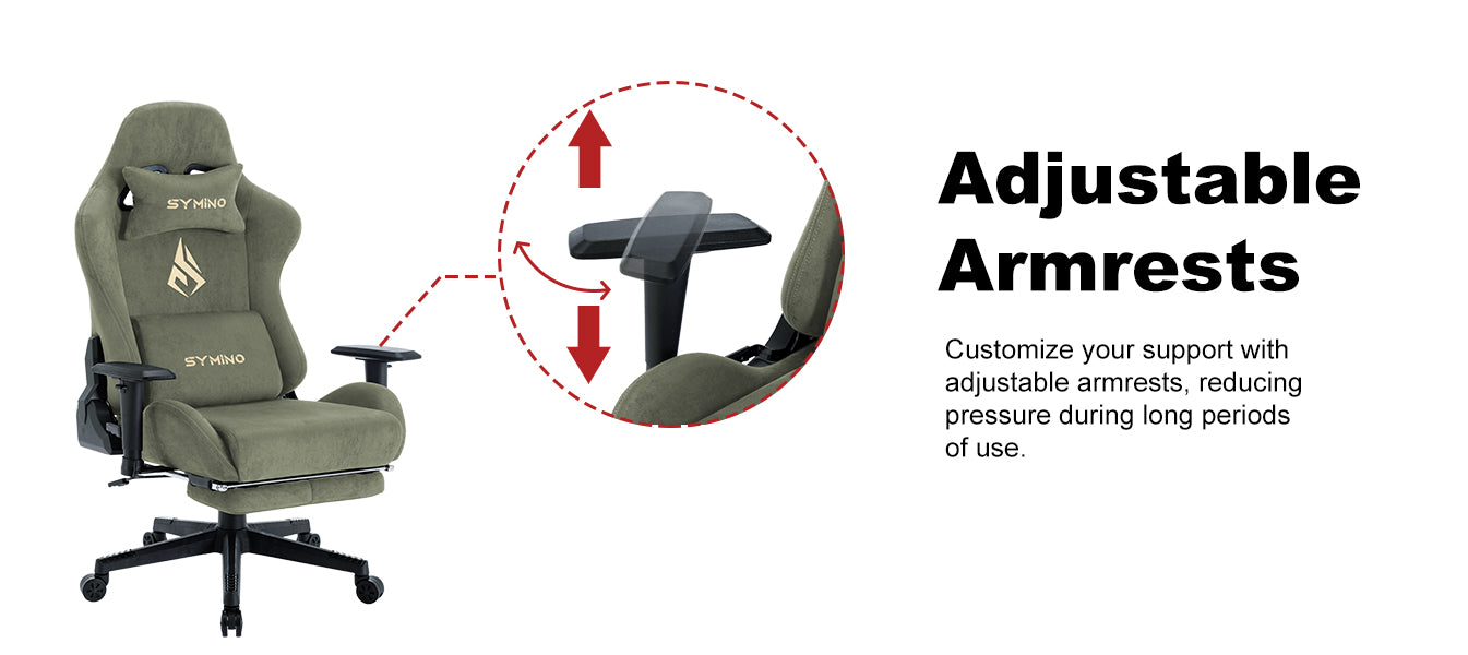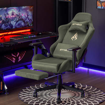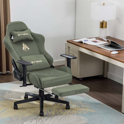 Chaise gaming respirante SYMINO avec repose-pieds, réglable et pivotante, verte