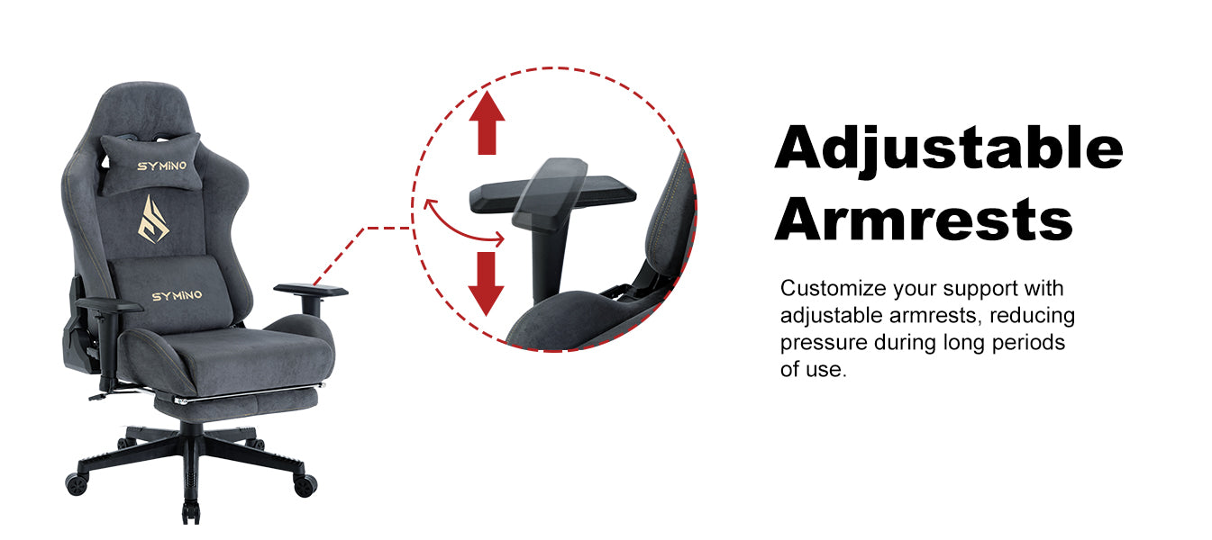 Chaise gaming respirante SYMINO avec repose-pieds, réglable et pivotante, grise