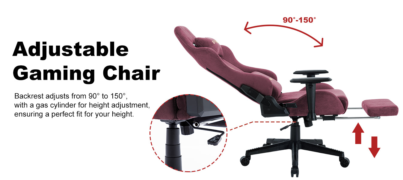 Chaise gaming respirante SYMINO avec repose-pieds, réglable et pivotante, rouge WinRed