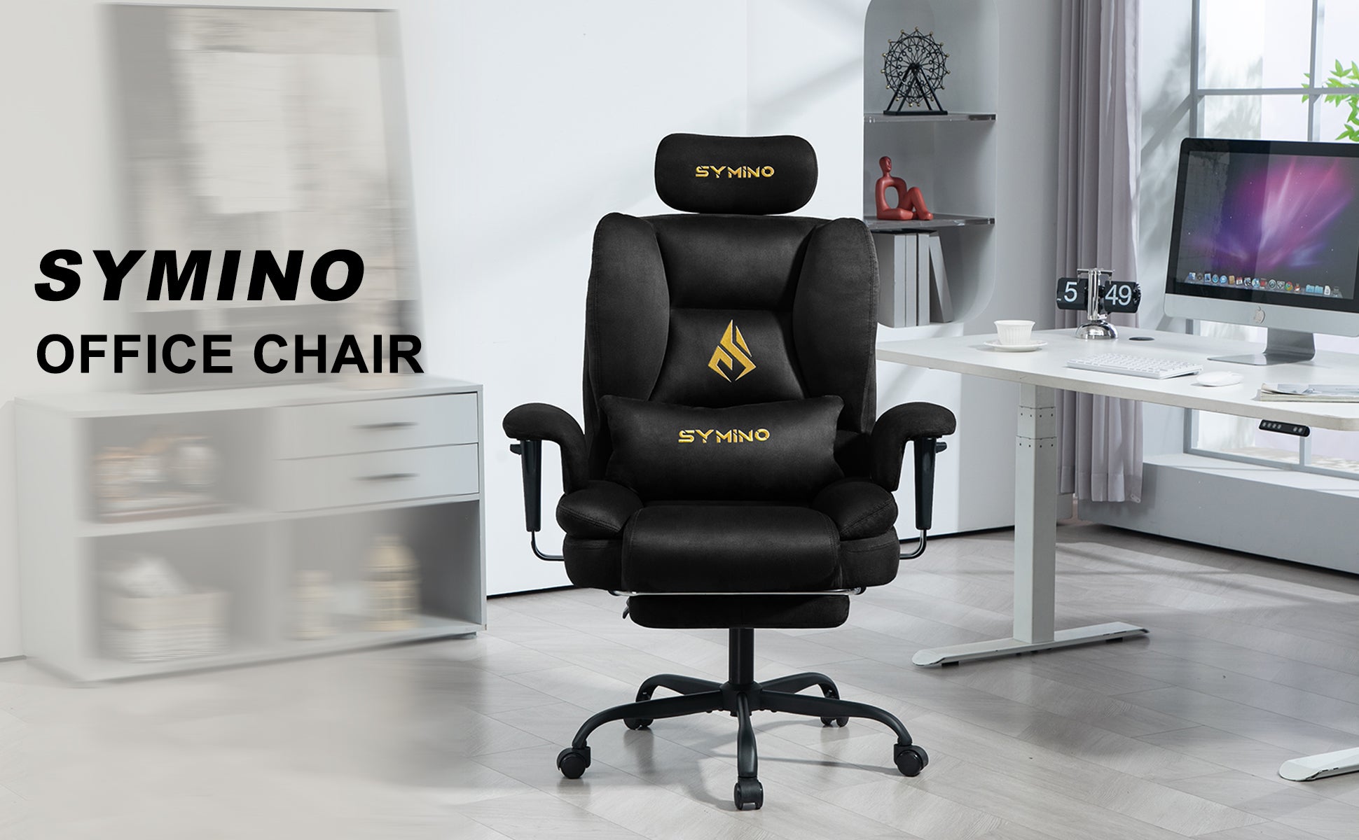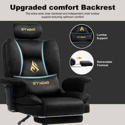 Fauteuil de jeu SYMINO, fauteuil ergonomique avec revêtement en fausse fourrure Meow Love, noir