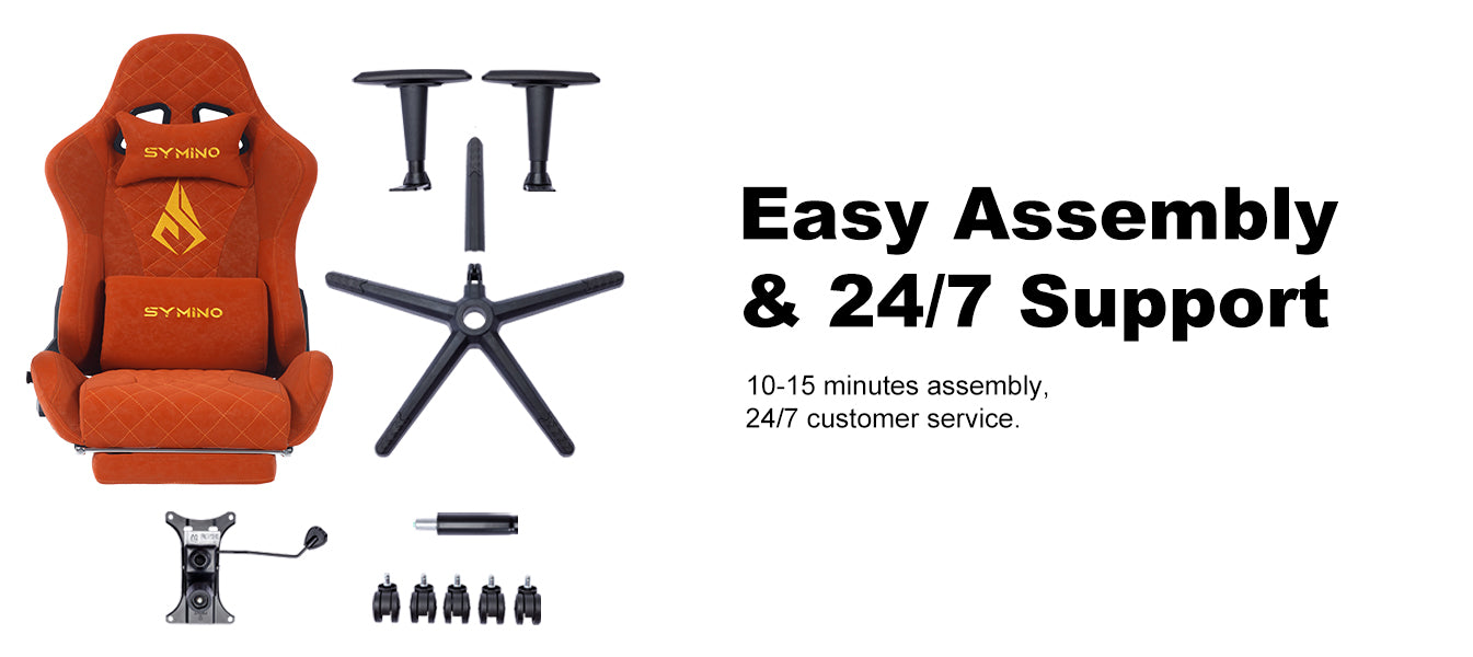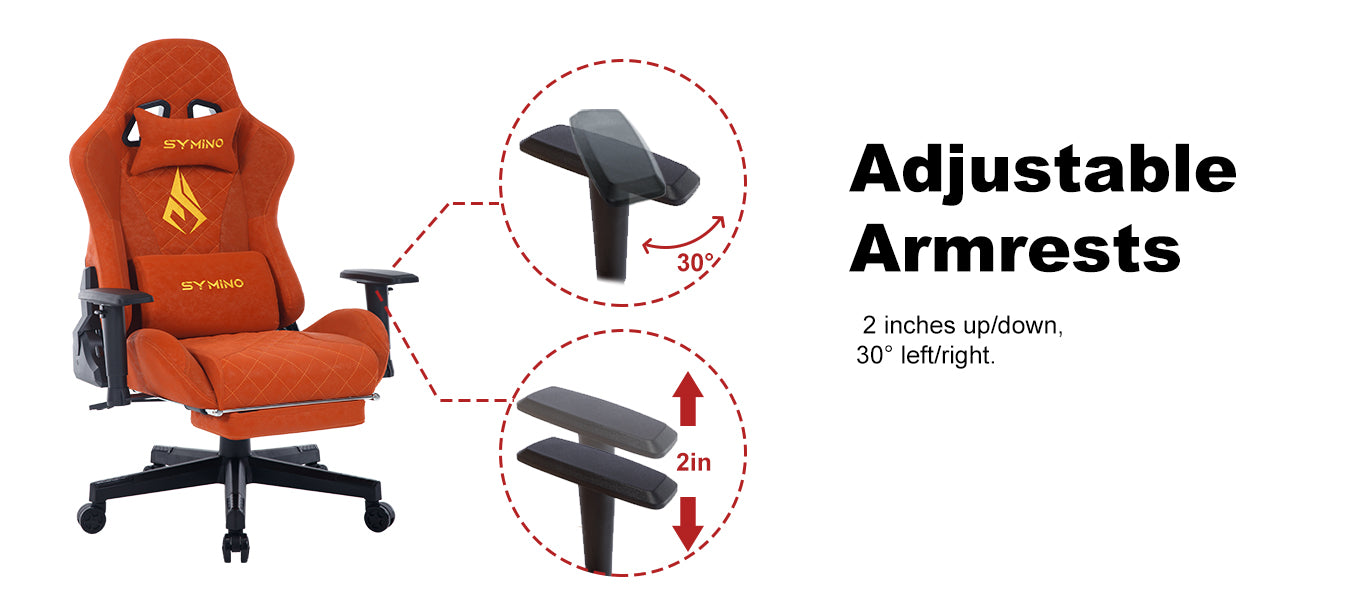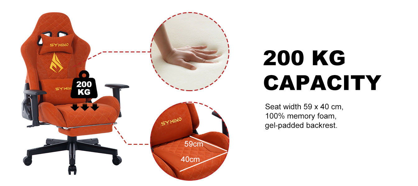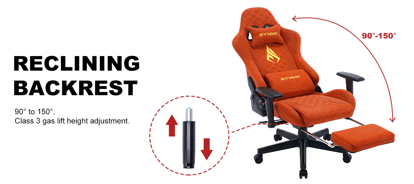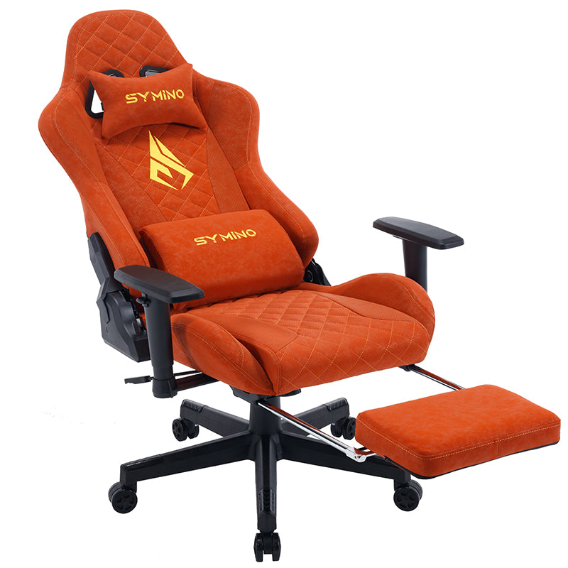 Chaise de jeu ergonomique vintage SYMINO en cuir PU orange.